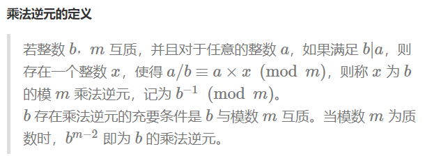 根据费马定理, b 的逆元就是 b^(p - 2), 故直接用快速幂求得。