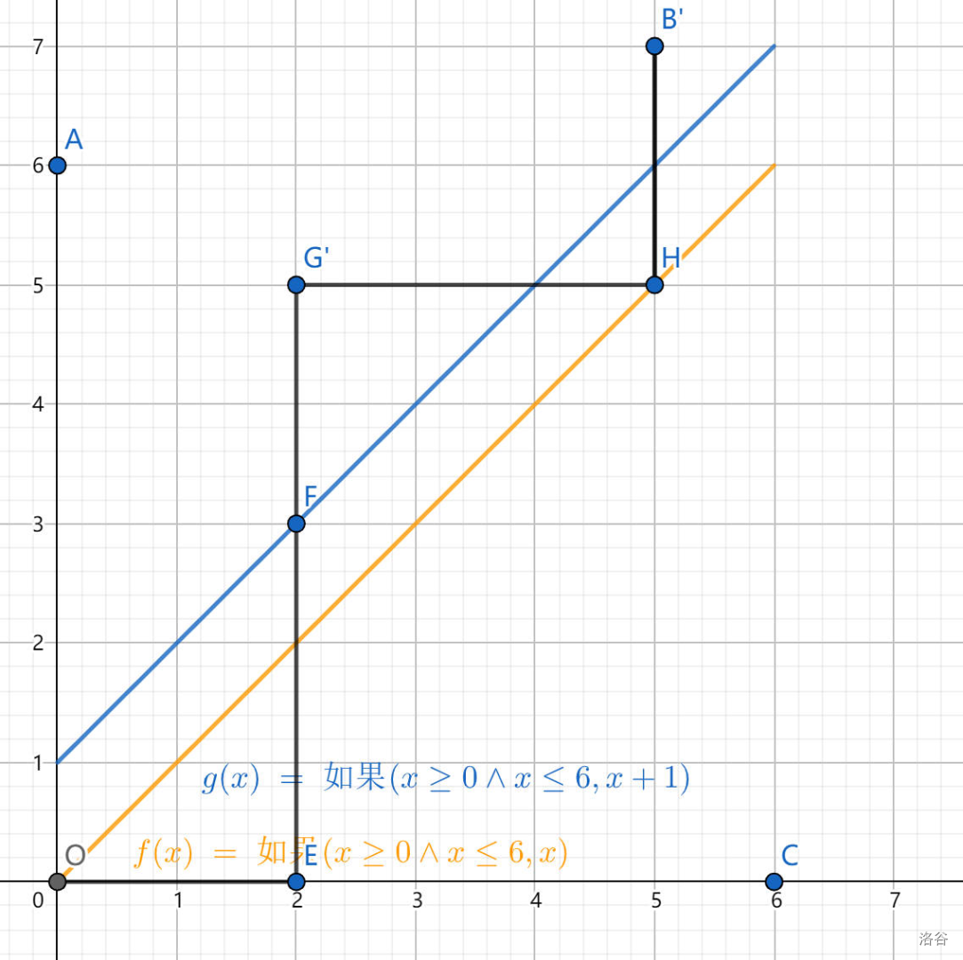 可以得出, 所有经过蓝色线到达(6,6)的路径, 在对于蓝线做对称后到达的点一定是 (5,7), 即