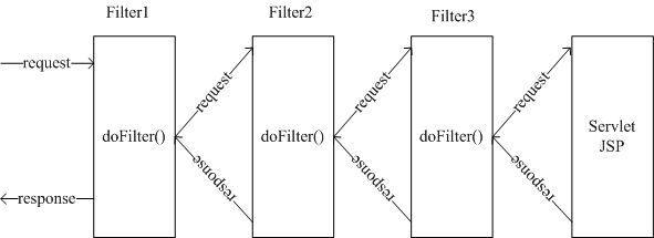 实际上,当doFilter方法调用时,就会一直向下直到Servlet,在Servlet处理完成之后,又依次返回到最前面的Filter,类似于递归的结构。