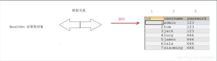 通过 statement.execQuery() 可以返回一个 ReasultSet 对象,其内部组织结构类似于: