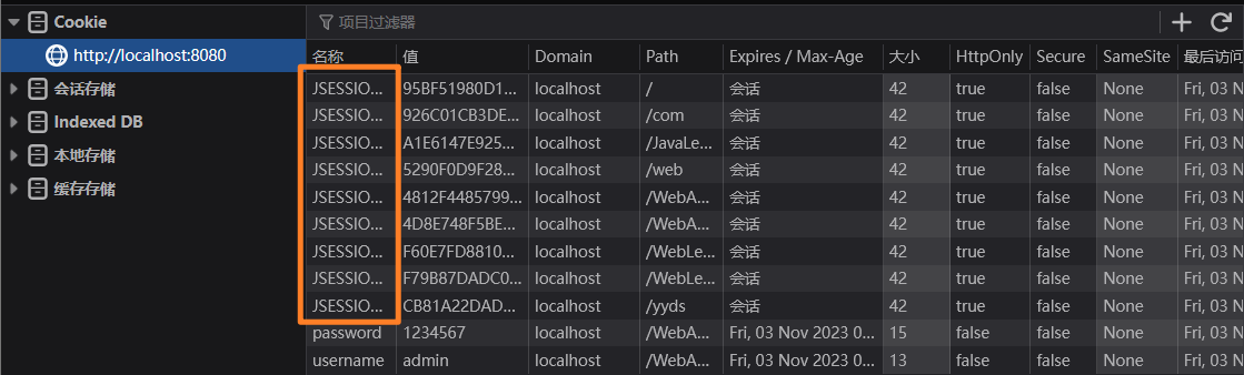 Session也利用了这一点,它会给浏览器设定一个叫做JSESSIONID的Cookie,值是一个随机的排列组合,而此Cookie就对应了你属于哪一个对话,只要我们的浏览器携带此Cookie访问服务器,服务器就会通过Cookie的值进行辨别,得到对应的Session对象,因此,这样就可以追踪到底是哪一个浏览器在访问服务器。
