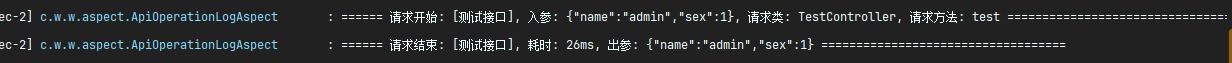 log.info("====== 请求结束: [{}], 耗时: {}ms, 出参: {} =================================== ",